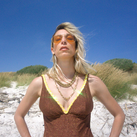 La modella indossa : INTERO SCOLLATO SHINE TABACCO